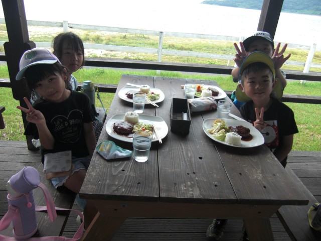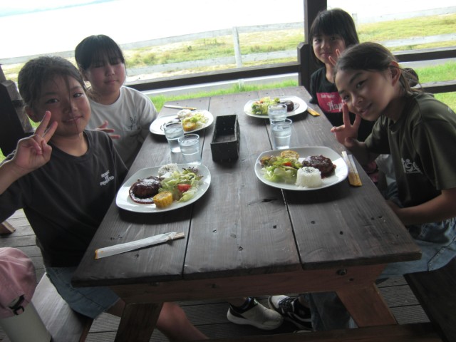 夏休みという事もあって学童さんも登園し、にぎやかに過ごしています。夏休みの思い出作りに、乗馬体験や食事などを計画し、年長児さんと一緒に出掛けました。川内町にあるシービューランチに行き、海辺を散策したり、乗馬をしたりと楽しいひと時を過ごすことが出来ました。